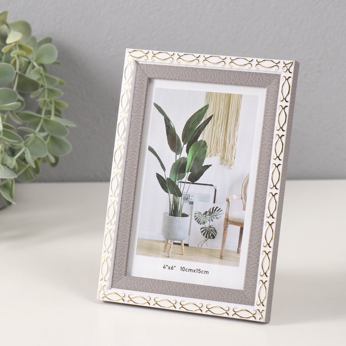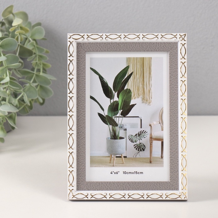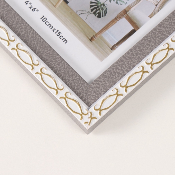 Фоторамка пластик 10х15 см "Золотые скобочки. Двойная" серая 12,6х17,5 см