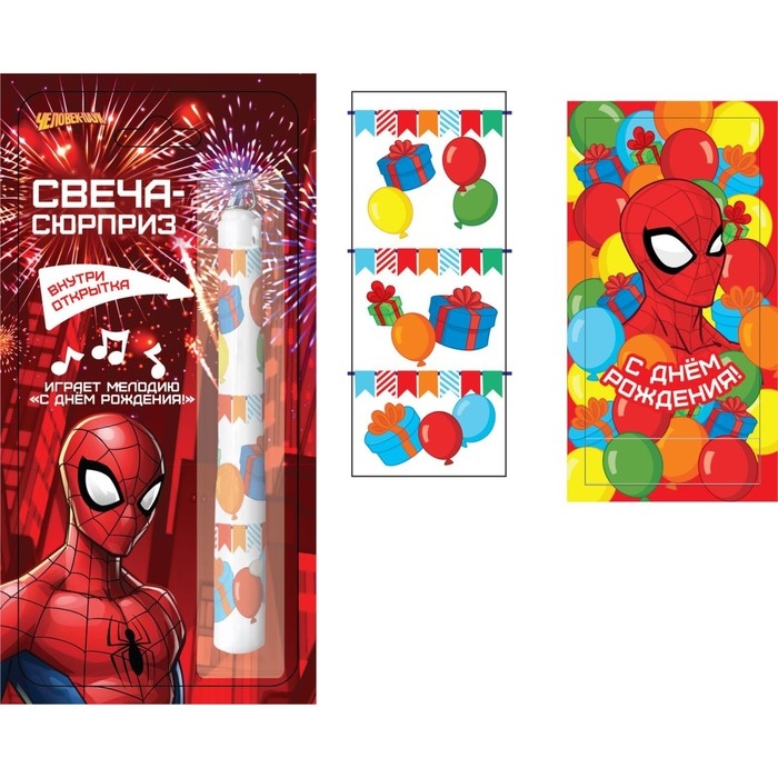 Свеча-сюрприз в торт, с открыткой, Человек-паук