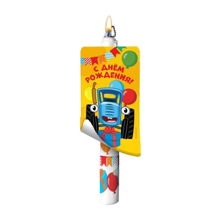 Свеча-сюрприз в торт, с открыткой, Синий трактор