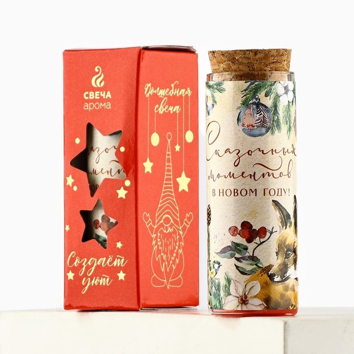 Свеча новогодняя «Сказочных моментов», на Новый год, аромат вишня, 9 х 3,5 см