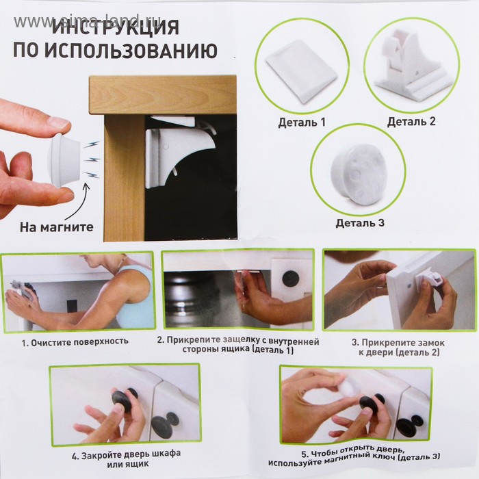 Набор блокираторов на магните для выдвижных ящиков, 2 шт., цвет белый, Крошка Я