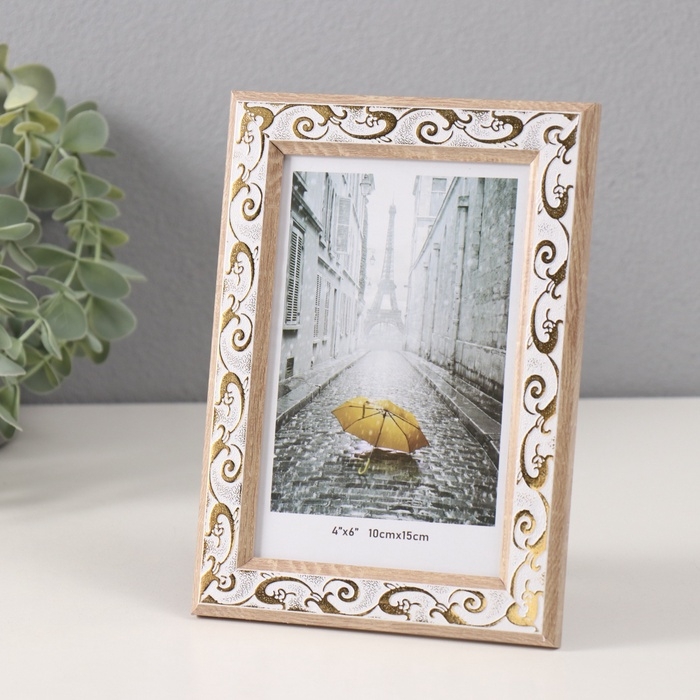 Фоторамка пластик 10х15 см "Золотой вьюнок на белом" 1х12,8х17,8 см