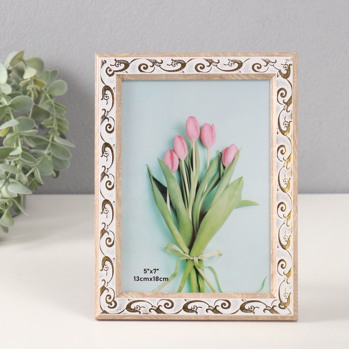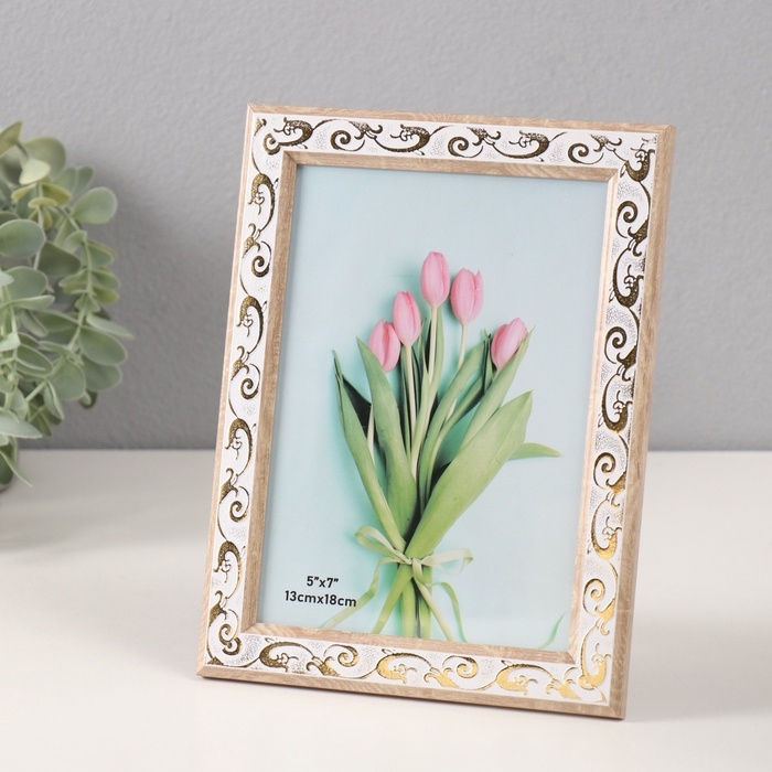 Фоторамка пластик 13х18 см "Золотой вьюнок на белом" 1,1х15,8х20,8 см