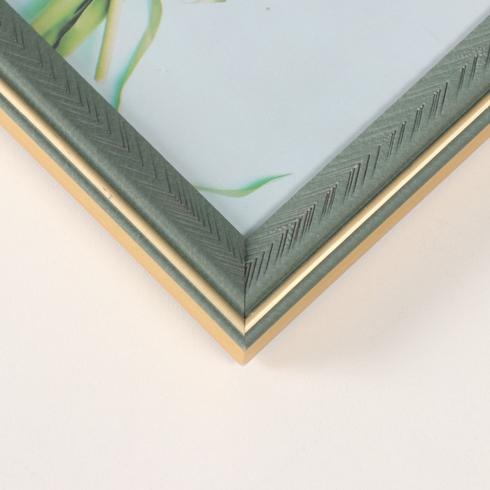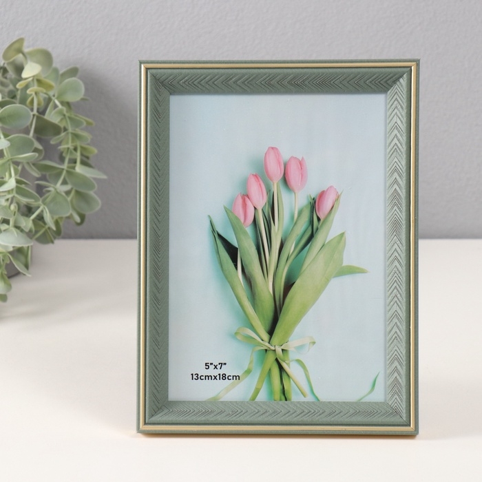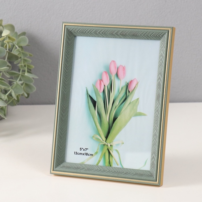 Фоторамка пластик 13х18 см "Галочки на зелёном" с золотой обводкой 1,4х15,7х20,5 см