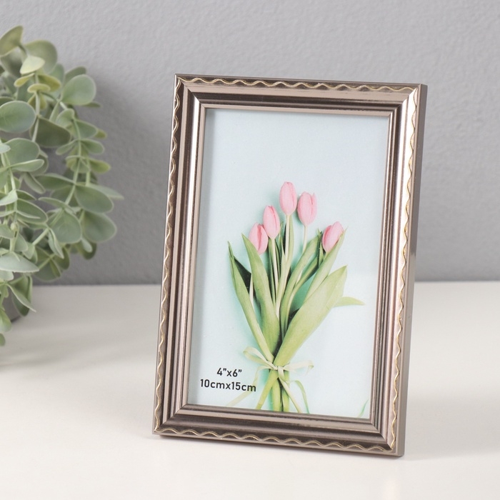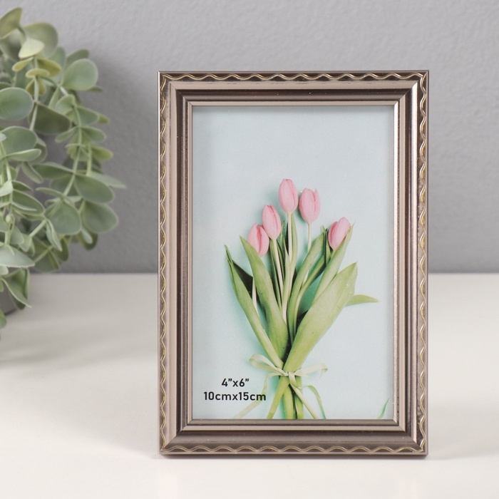 Фоторамка пластик 10х15 см "Волнистая линия на серебре" 1,3х12х17 см