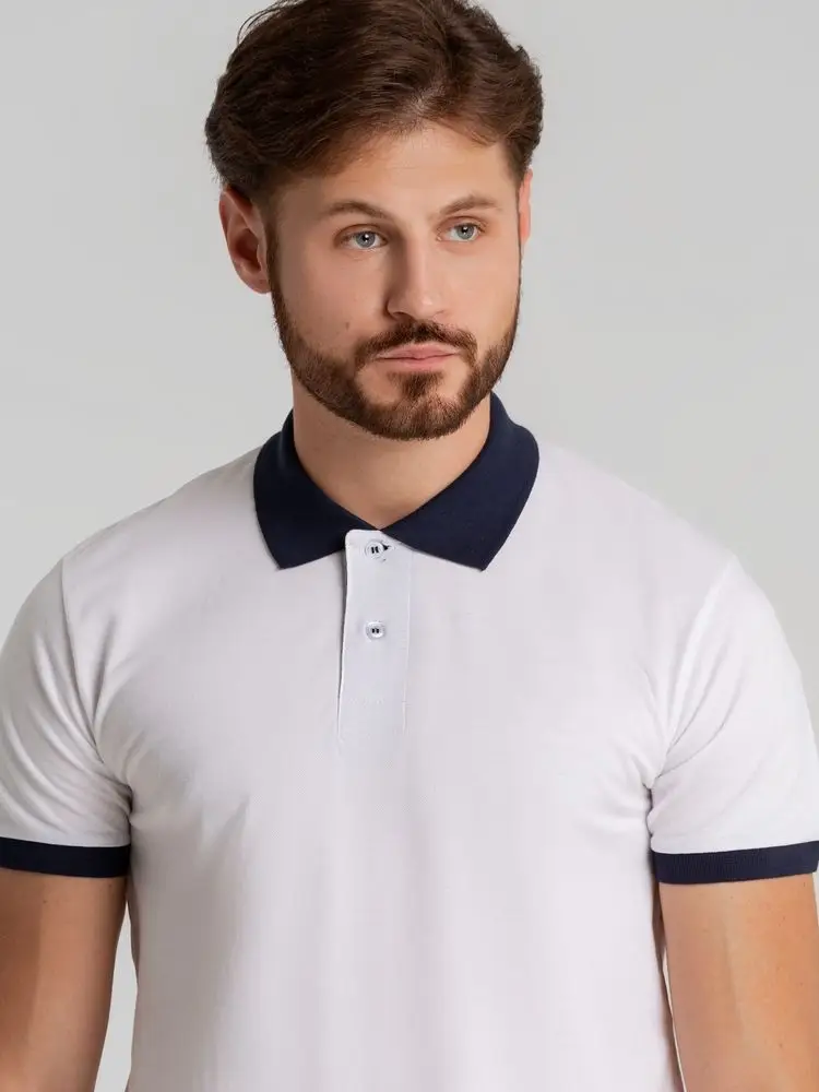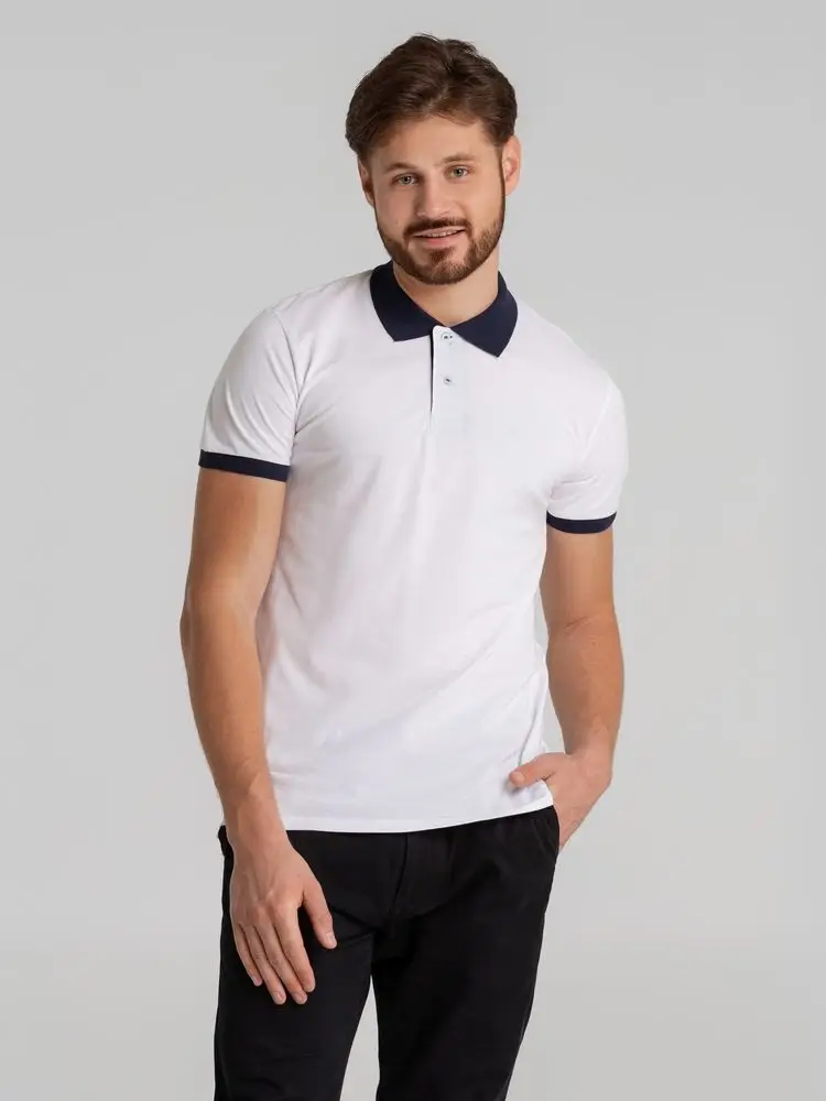 Рубашка поло Prince 190 белая с темно-синим , размер L