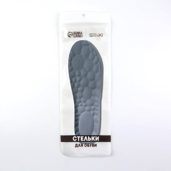Стельки для обуви, универсальные, дышащие, р-р RU до 45 (р-р Пр-ля до 47), 28,5 см, пара, цвет серый