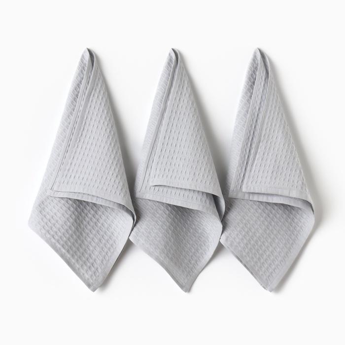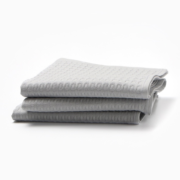 Набор кух.полотенец "Доляна" серый 35х60см-3шт., 100% хл, вафля, 220 гр/м2