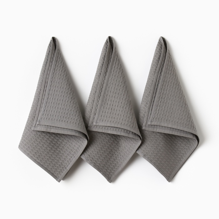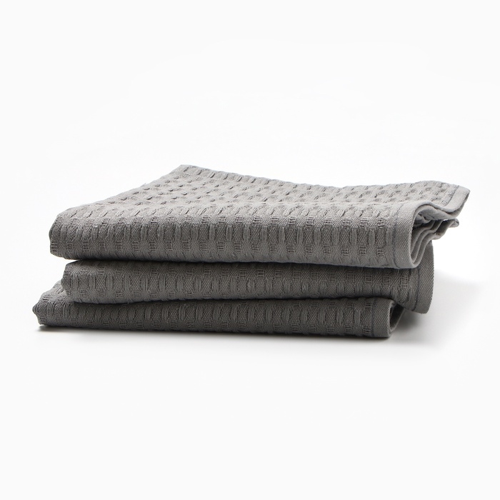 Набор кух.полотенец "Доляна" тёмно-серый 35х60см-3шт., 100% хл, вафля, 220 гр/м2