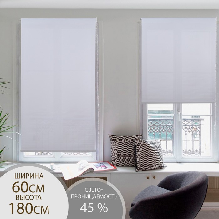 Штора рулонная «День-ночь» с люрексом, 60×180 см (с учётом креплений 3,5 см), цвет белый