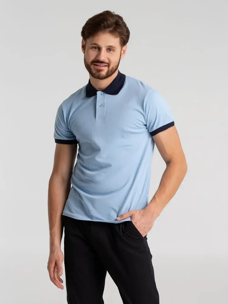Рубашка поло Prince 190 голубая с темно-синим, размер S