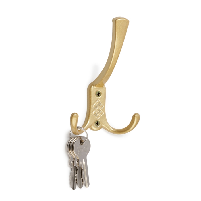 Крючок мебельный ТУНДРА TKT003 LIGHT, трехрожковый, матовое золото