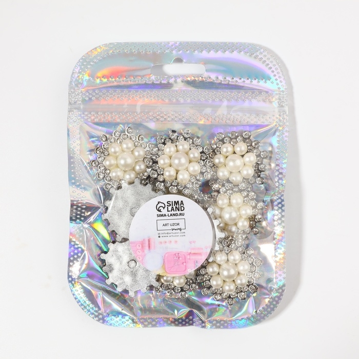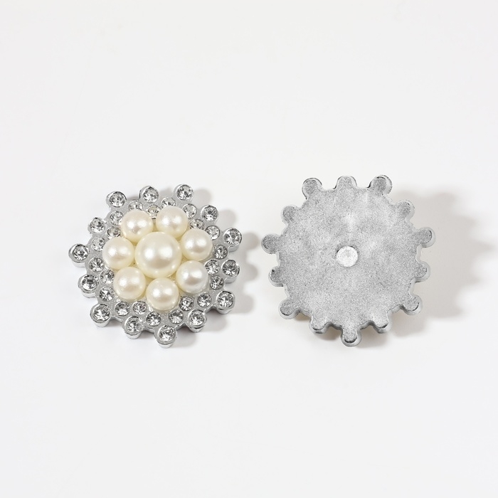 Набор кабошонов с жемчугом «Цветы», d = 25 мм, 10 шт, цвет серебряный