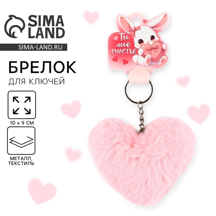 Брелок для ключей пушистик, детский, сердечко «Ты мое счастье», 9 х 10 см
