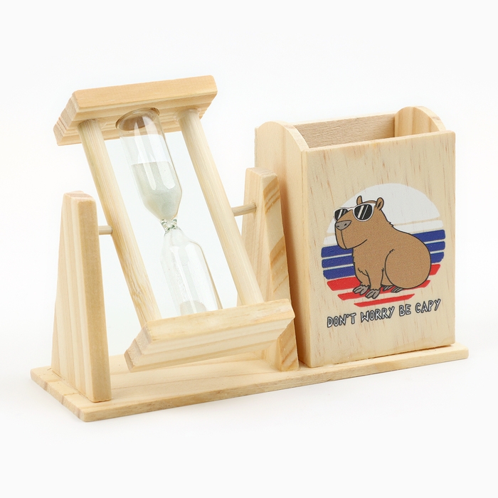 Песочные часы — органайзер "Don't worry be capy" для канцелярии, 13.5 х 9.5 х 5 см