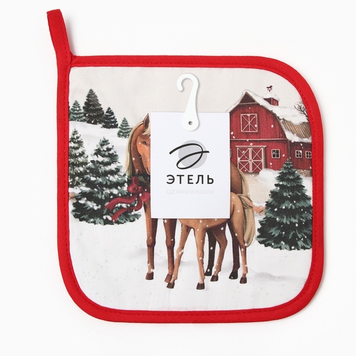Новый год. Прихватка Этель Нorse family саржа, 19х19см,100% хл,ватин 250г/м2