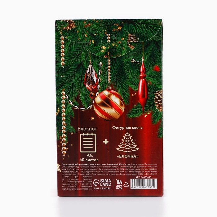 Подарочный набор новогодний блокнот А6, 40 л и фигурная свеча «Счастья в Новом году!»