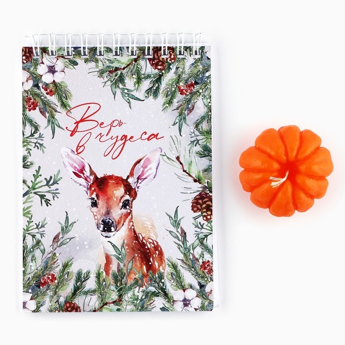 Подарочный набор новогодний блокнот А6, 40 л и фигурная свеча «С Новым годом! Верь в чудеса»