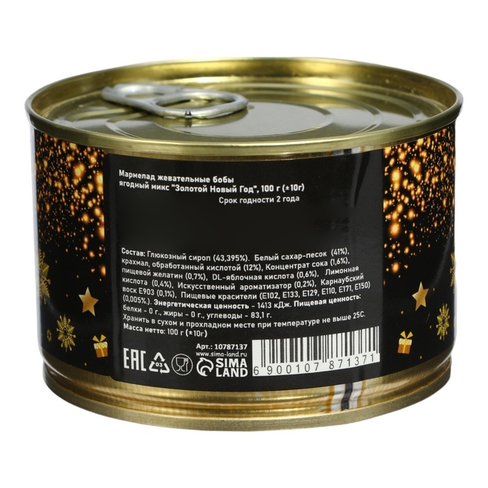 Новый год. Мармеладные бобы "Золотой 2025", в консервной банке, 100 г