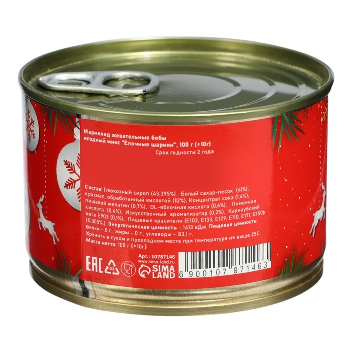 Новый год. Мармеладные бобы "Ёлочные шары", в консервной банке, 100 г