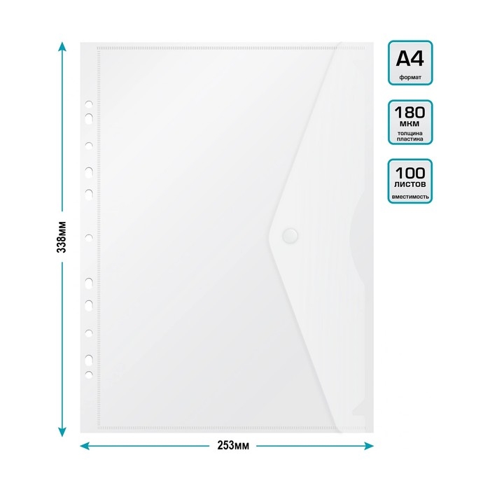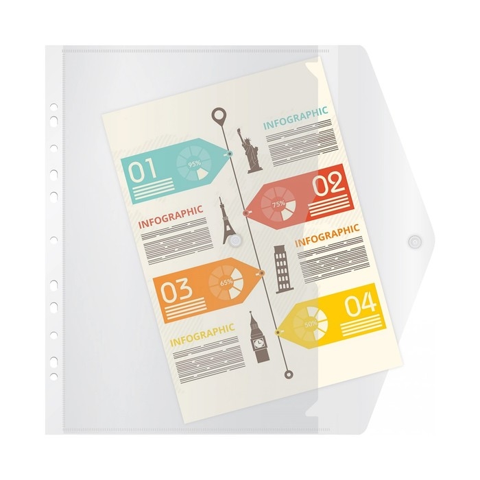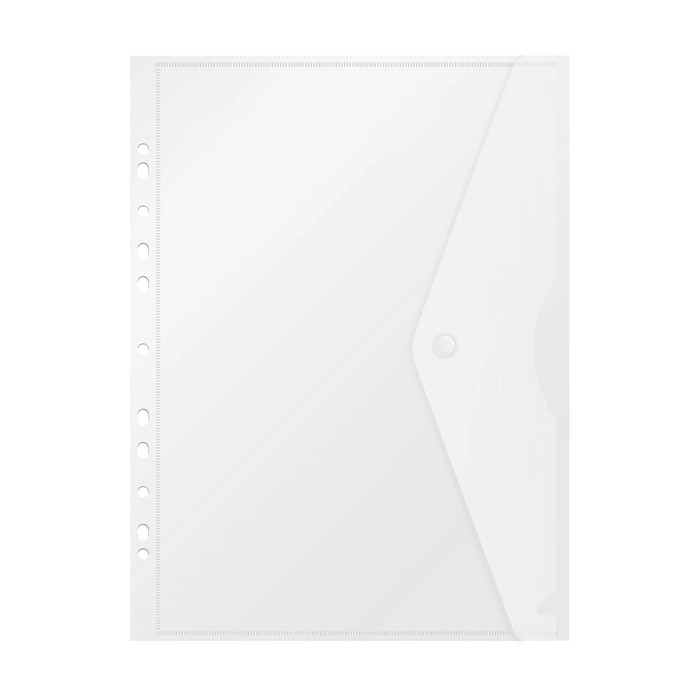 Папка-конверт на кнопке А4, 180 мкм, Calligrata Office, прозрачная, перфорация по длинной стороне, бесцветная