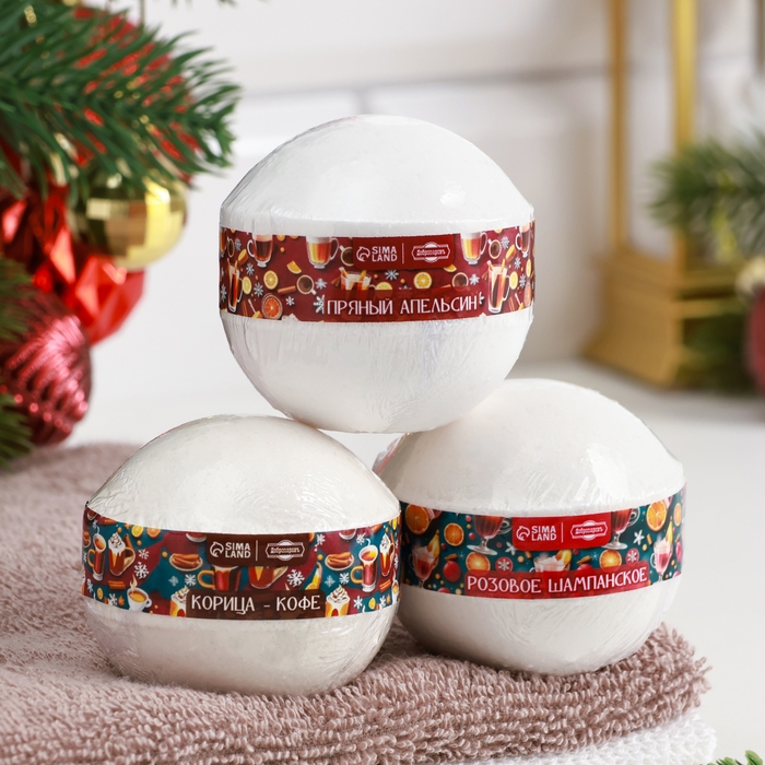Новый год Набор бомбочек 3 шт "Пряный апельсин, Розвое шампанское, Корица-кофе"