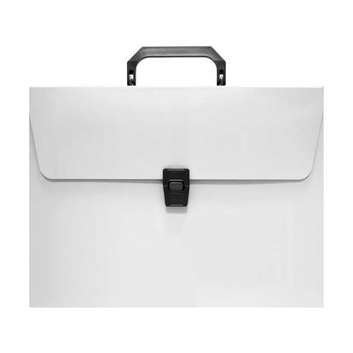 Папка-портфель с одним отделением «Calligrata» предназначена для транспортировки документов и бумаг формата А4. Размер изделия — 340 х 250 х 40 мм. Портфель вмещает до 220 листов. Он изготовлен из пластика плотностью 700 мкм. Папка застёгивается на замок, имеет пластиковую ручку чёрного цвета. Папка представлена в классическом офисном белом цвете и подходит для персонализации.