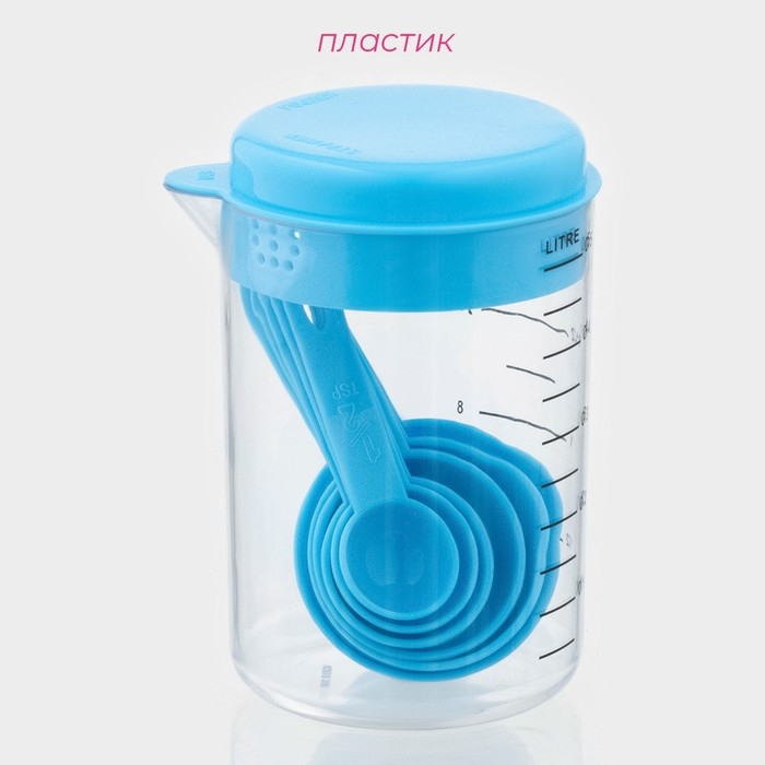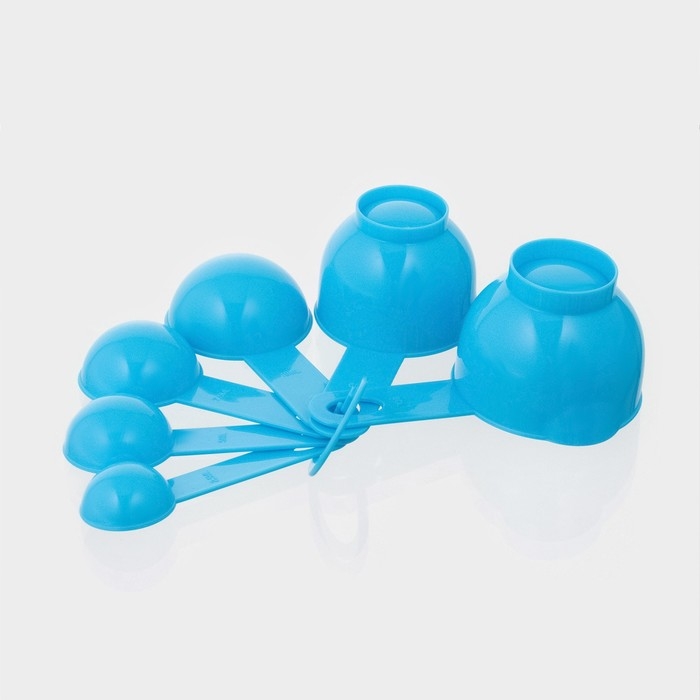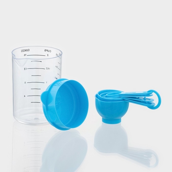 Набор мерных ёмкостей Доляна «Маэстро», 7 предметов: стакан 500 мл, ложки, цвет голубой