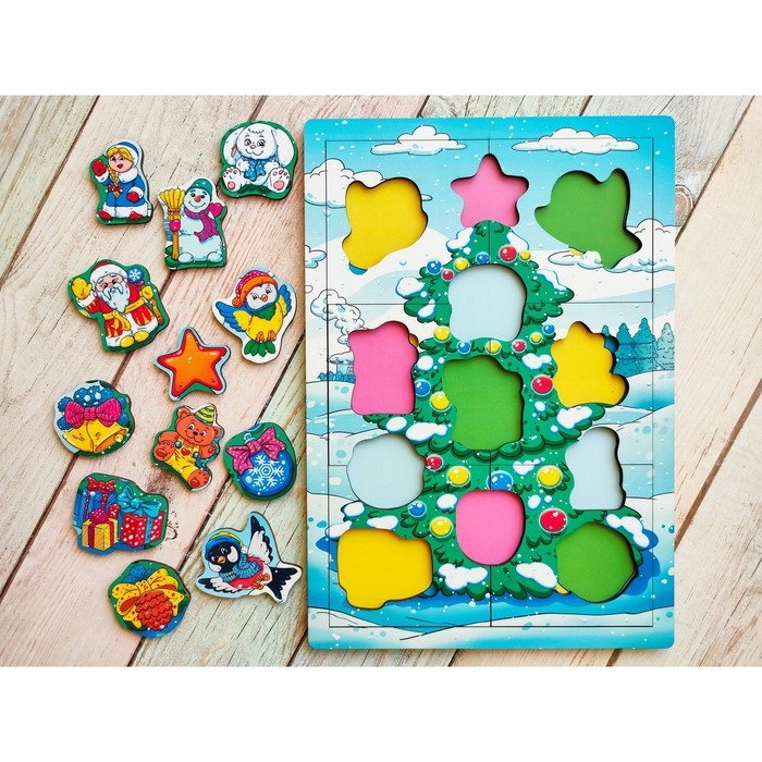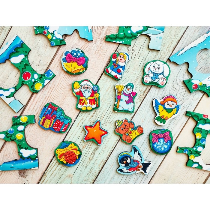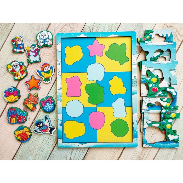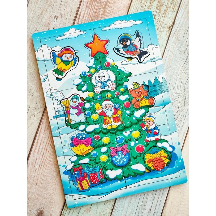 Пазл «Новогоднее настроение» — это увлекательная развивающая игра для детей от 3 лет, которая поможет создать праздничную атмосферу и весело провести время. С ярким новогодним изображением и 18 крупными деревянными элементами, пазл тренирует моторику и внимание у ребёнка.