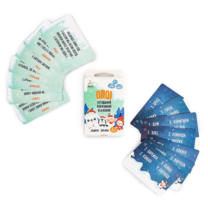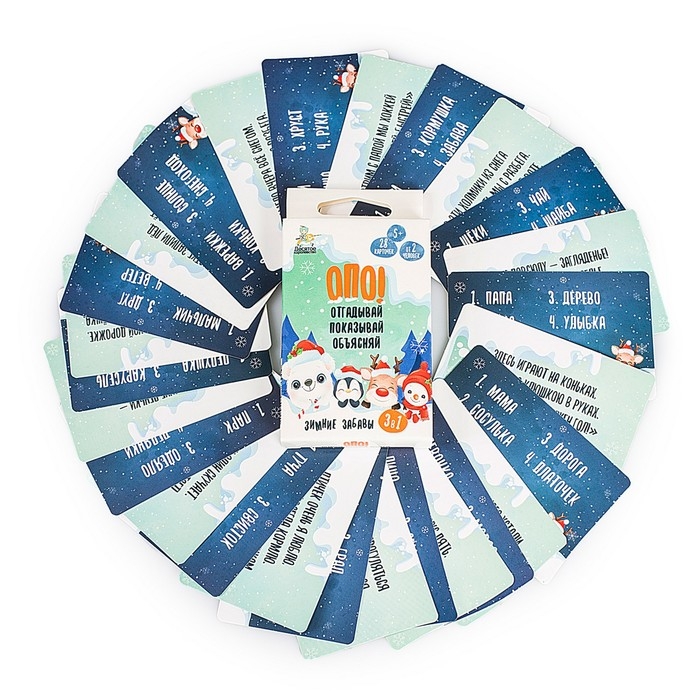 Игра настольная «Опо! Отгадывай. Показывай. Объясняй. Зимние забавы», 3 в 1, 28 карточек