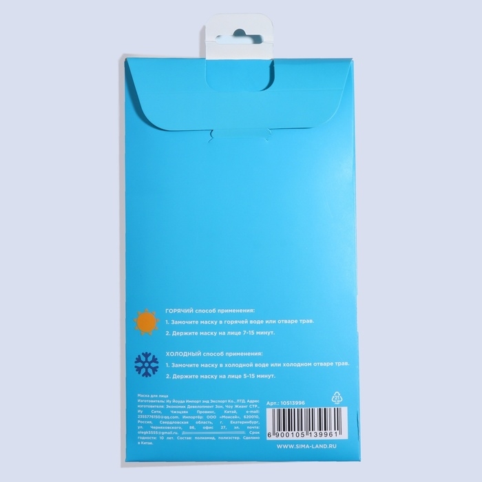 Многоразовая маска станет Вашим незаменимым помощником в уходе за лицом. С её помощью Вы сможете выполнять такие процедуры как: охлаждение лица, горячий компресс, увлажнение. Регулярное применение маски способствует выравниванию тона лица, снятию отёчности и следов усталости, а также улучшению кровообращения.