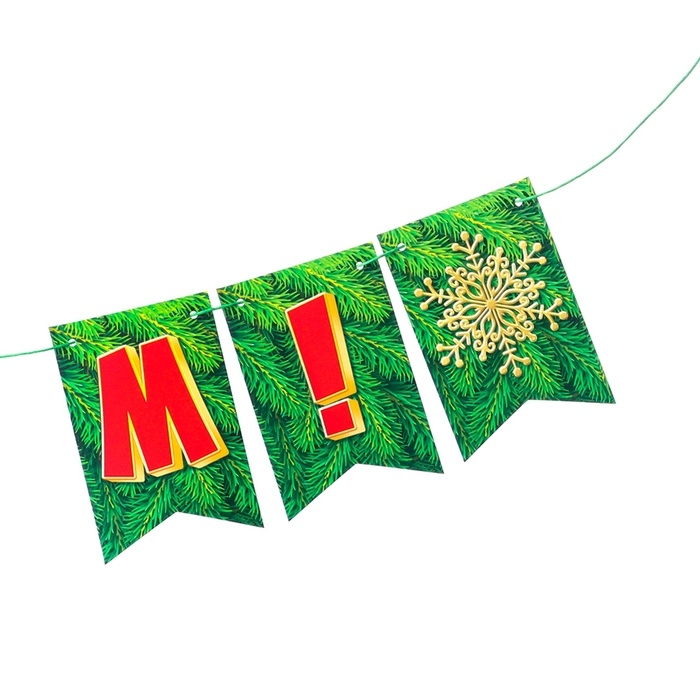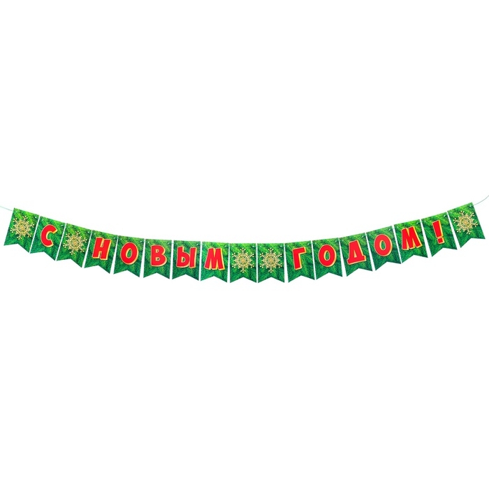 Гирлянда двусторонняя "С Новым Годом!" глиттер, 17 деталей, 250 см