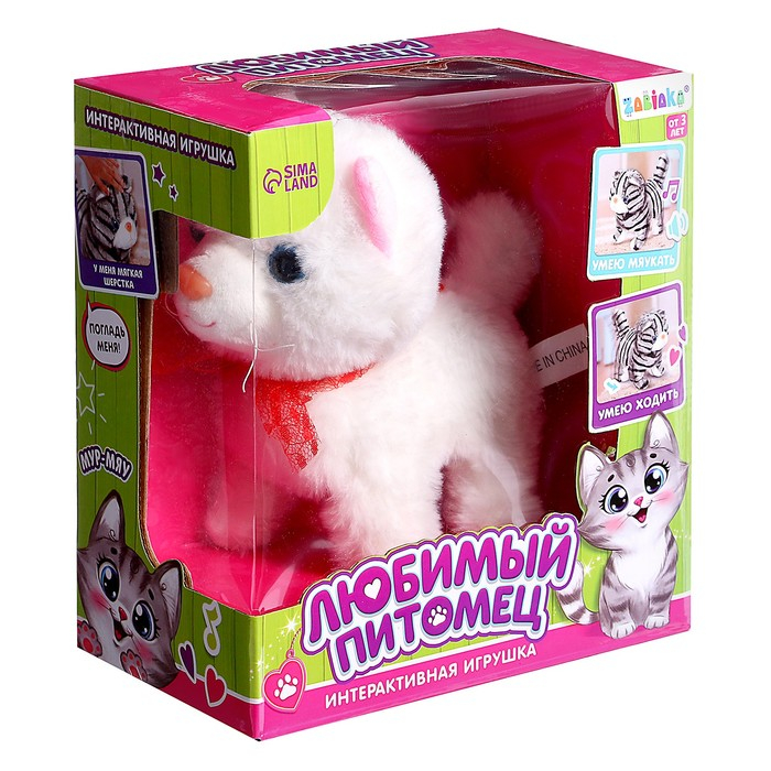 Котёнок имеет мягкую шёрстку, ходит и мяукает. Игрушку можно взять с собой на прогулку, в школу или детский сад, а также весело поиграть дома.