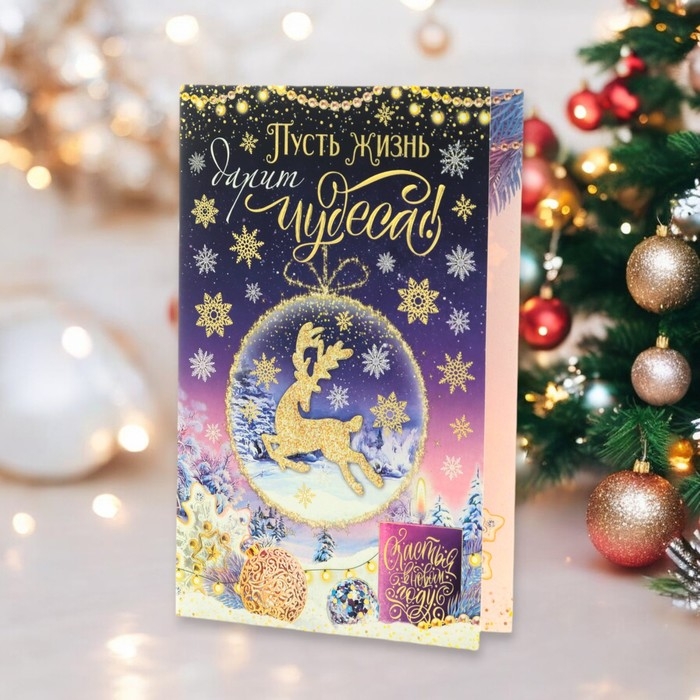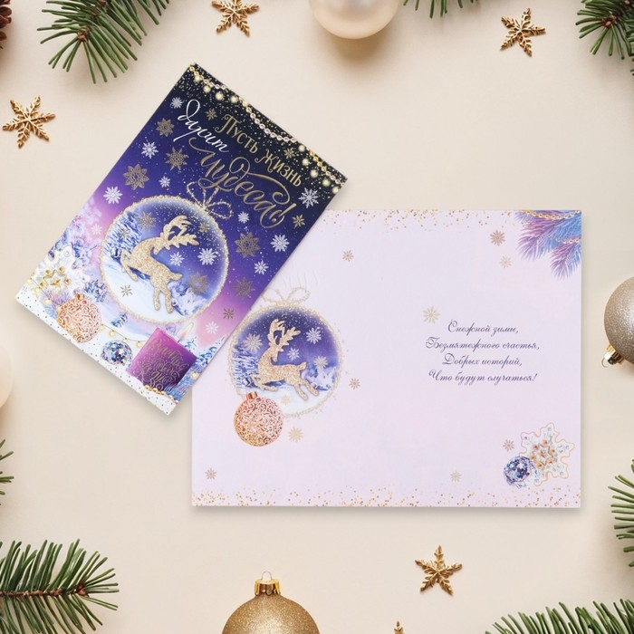 Открытка "Пусть жизнь дарит чудеса!" конгрев, тиснение, олень, 12,5 х 19,4 см