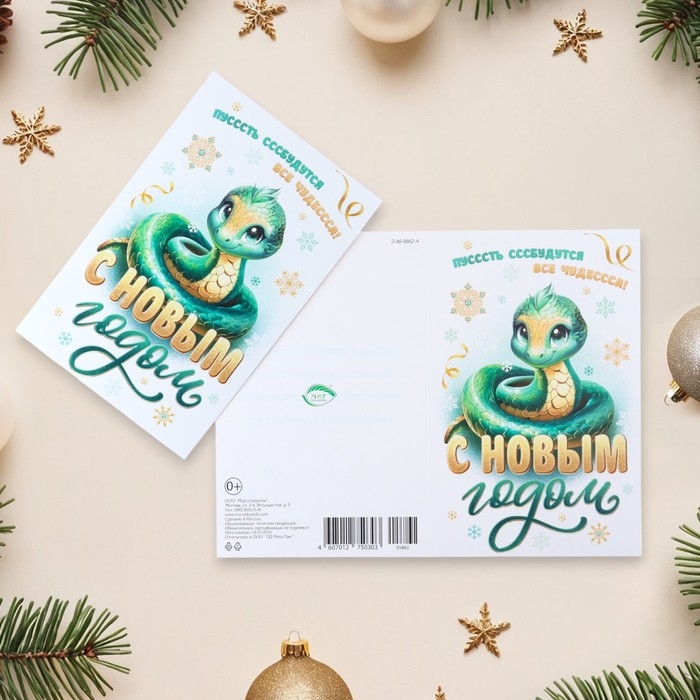 Открытка "С Новым Годом! - 1" глиттер, конгрев, символ года, 12,5 х 19,4 см