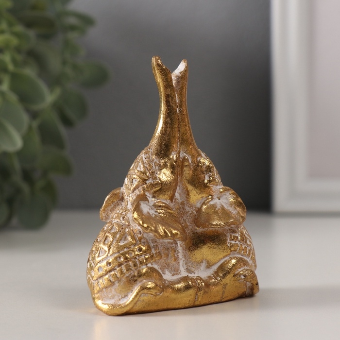 Сувенир полистоун "Слонята. Индейские узоры" золото 6,2х3,5х7,8 см
