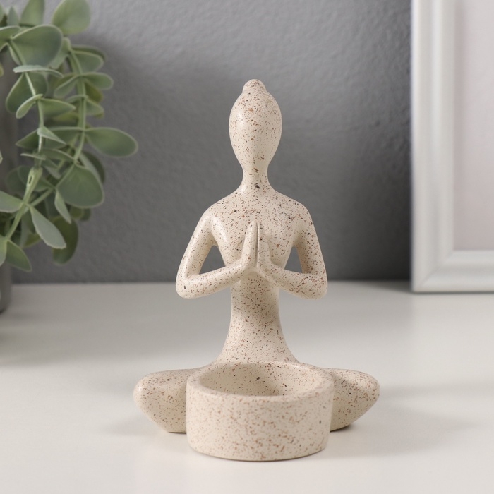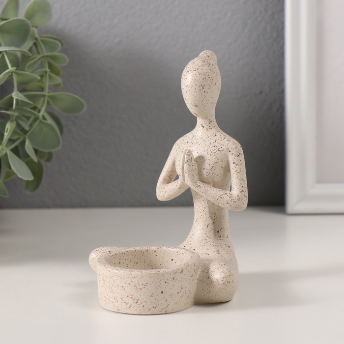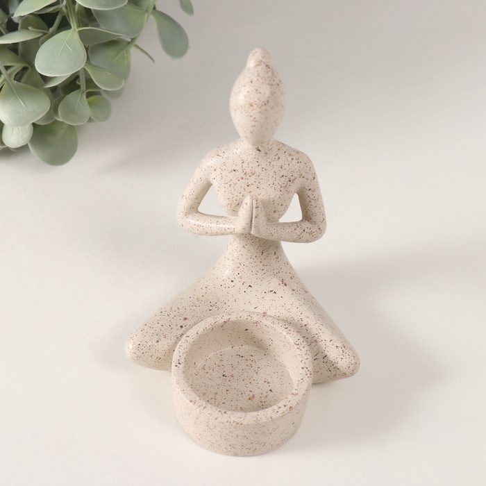 Подсвечник полистоун на 1 свечу "Девушка. Приветствие" белый в крапинку 8,5х8,8х11,7 см