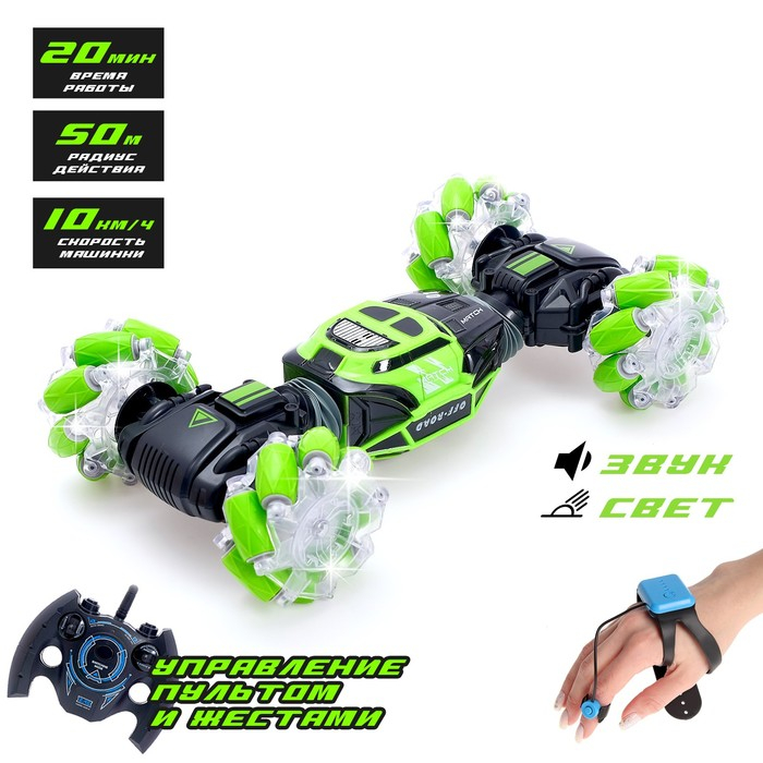 Машинка-перевёртыш HYPER SKIDDING с управлением жестами, свет, масштаб 1:16, цвет зелёный