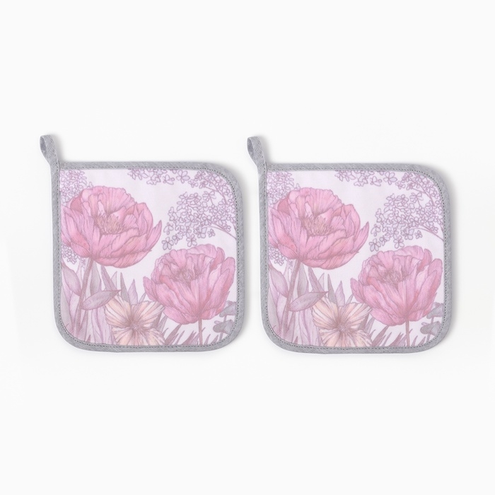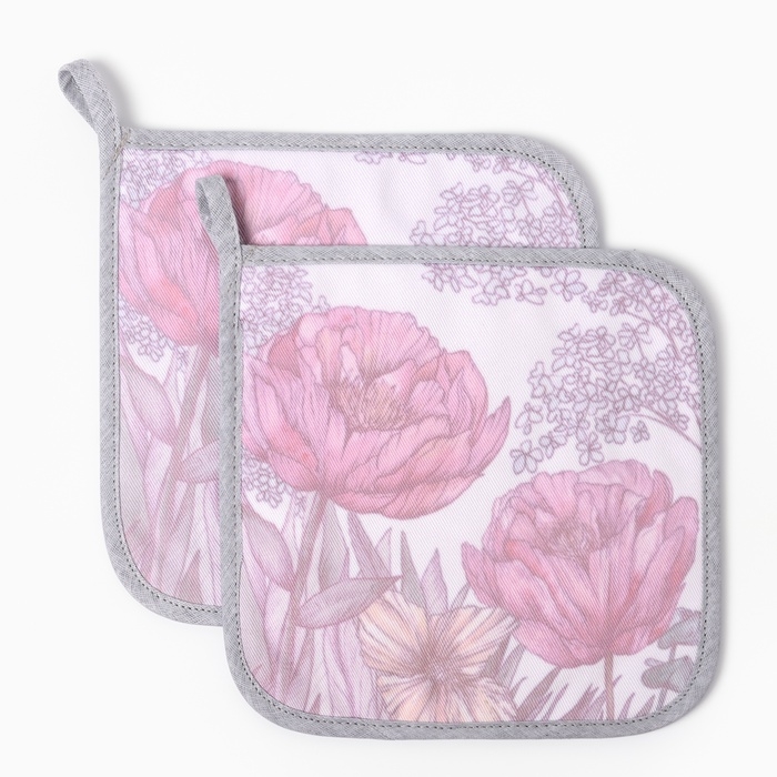 Набор прихваток Этель Рoppy fields 2 шт, 19х19 саржа,100% х/л,ватин 250г/м2