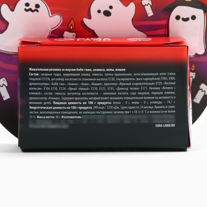 Хэллоуин Жевательная резинка в коробке "Привидение", 40 г