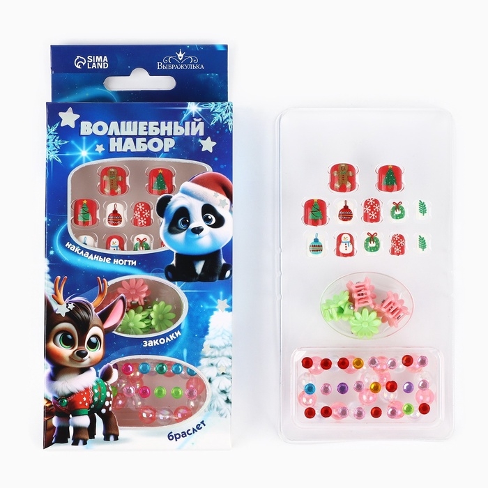 Детские накладные ногти «Ты чудесна», 12 шт, набор с браслетом и заколками