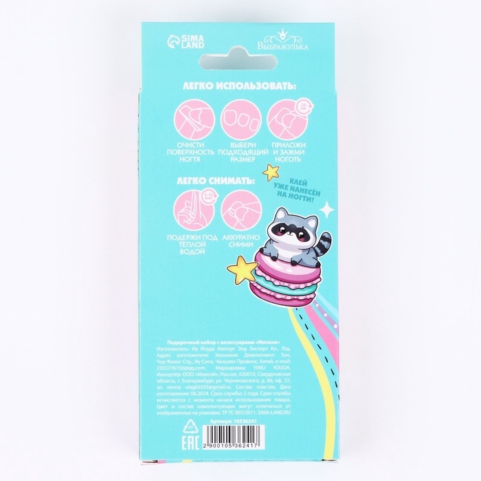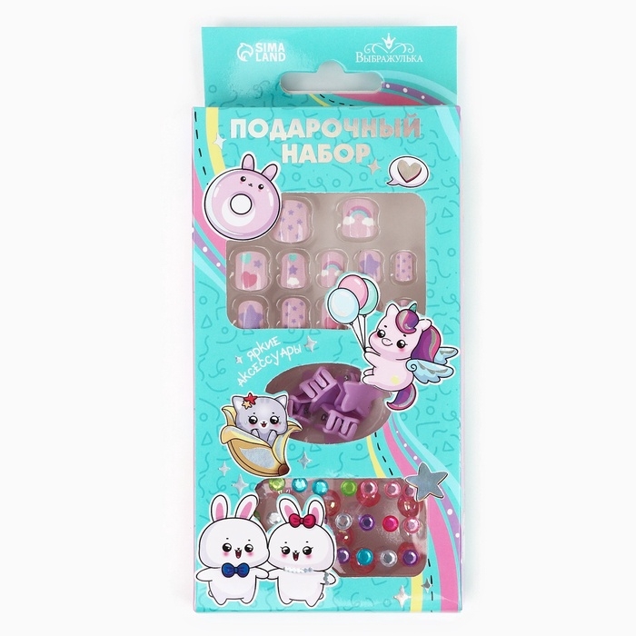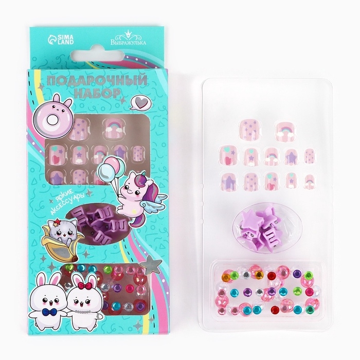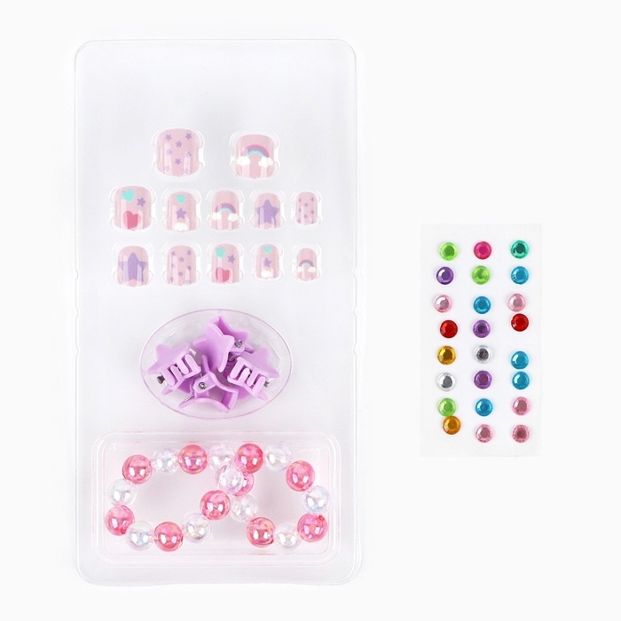 Детские накладные ногти «Милахи», 12 шт, набор с браслетом и заколками
