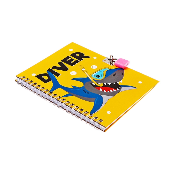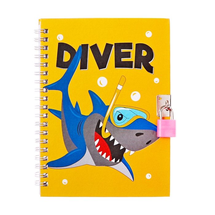 Записная книжка подарочная, 45 листов, линия, на замке, на гребне, Акула (17,8х13см)