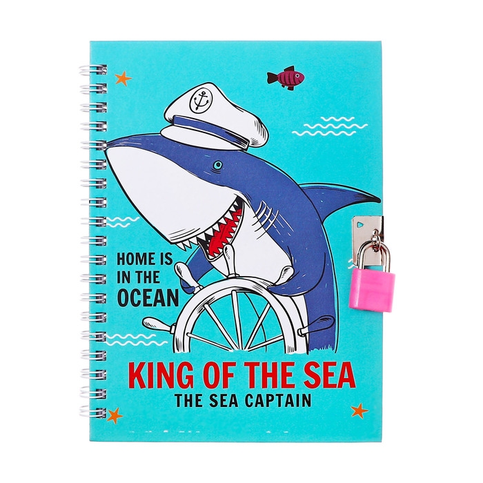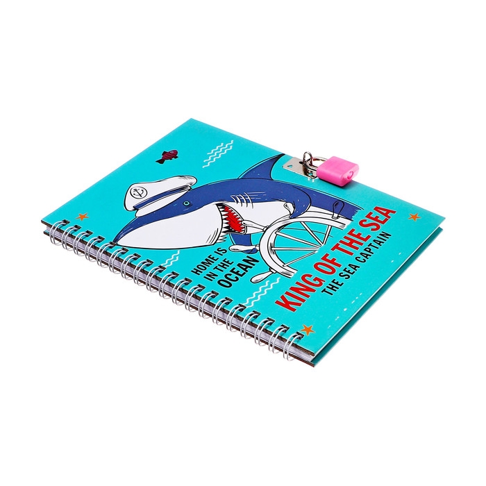 Записная книжка подарочная, 45 листов, линия, на замке, на гребне, Акула (17,8х13см)