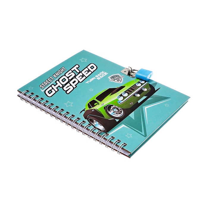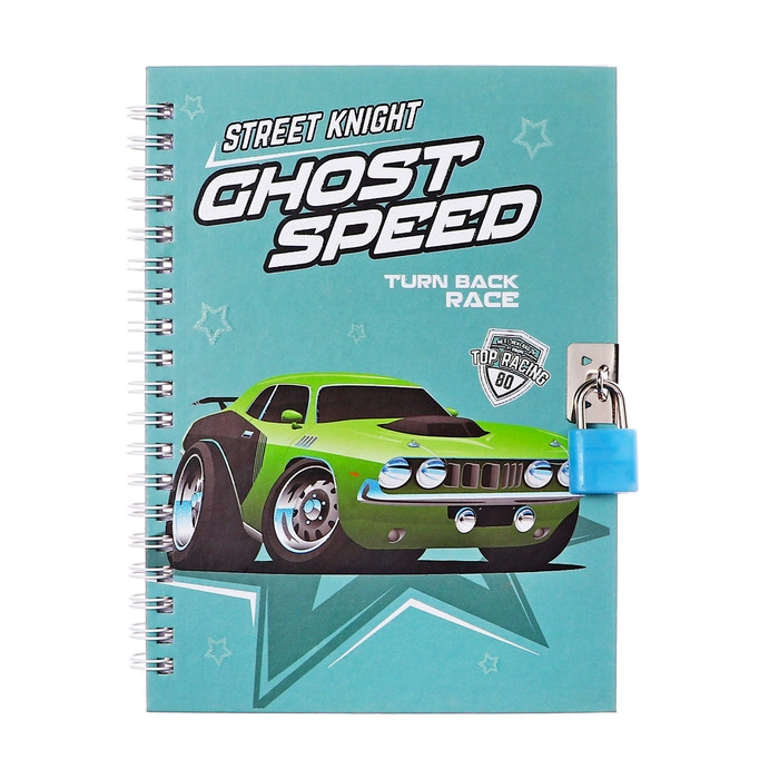 Записная книжка подарочная, 45 листов, линия, на замке, на гребне, Машина зеленая(17,8х13см) 10549