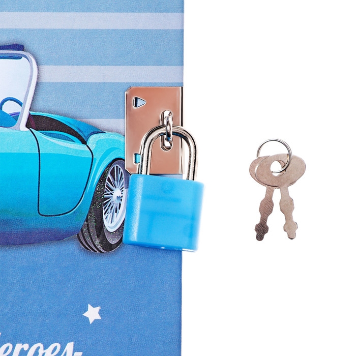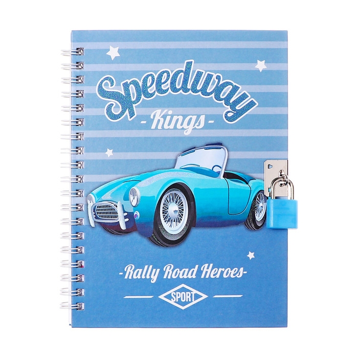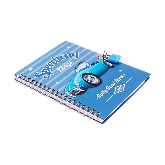 Записная книжка подарочная, 45 листов, линия, на замке, на гребне, Машина (17,8х13см)