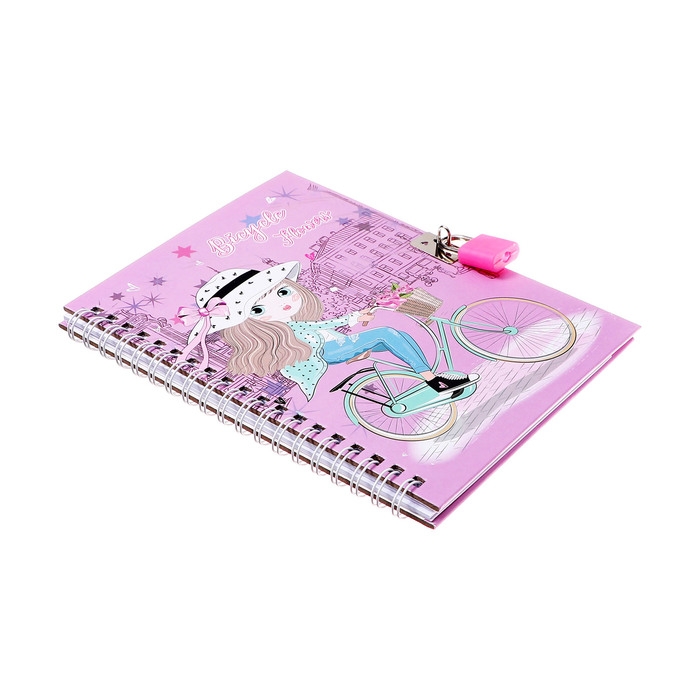 Записная книжка подарочная, 45 листов, линия, на замке, на гребне, Девочка (17,8х13см)