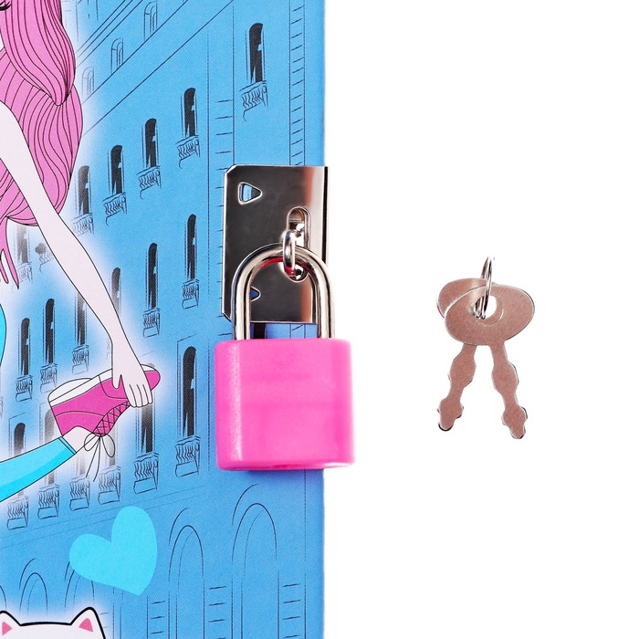 Записная книжка подарочная, 45 листов, линия, на замке, на гребне, Модницы (17,8х13см)