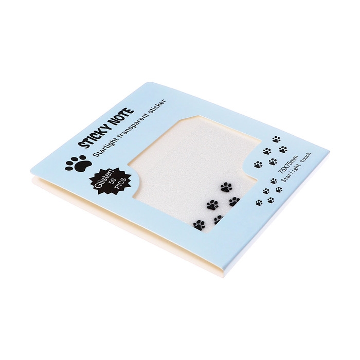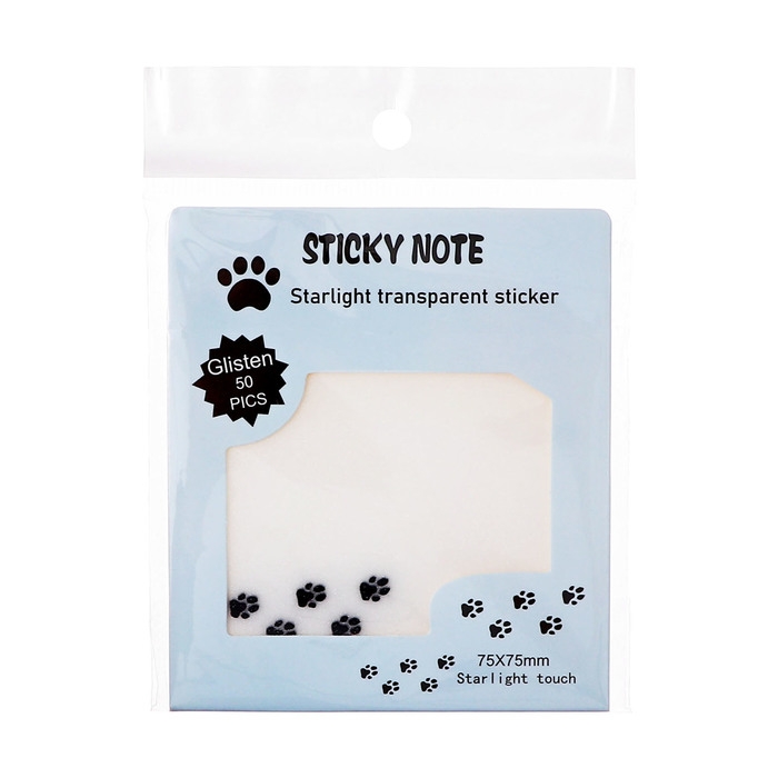 Блок с липким краем 75мм х 75мм 50л пластик прозрачные с блестками Лапки