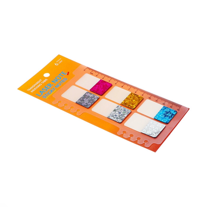 Блок-закладки с липким краем пластик 20 листов Блёстки 42 х 25 мм с линейкой